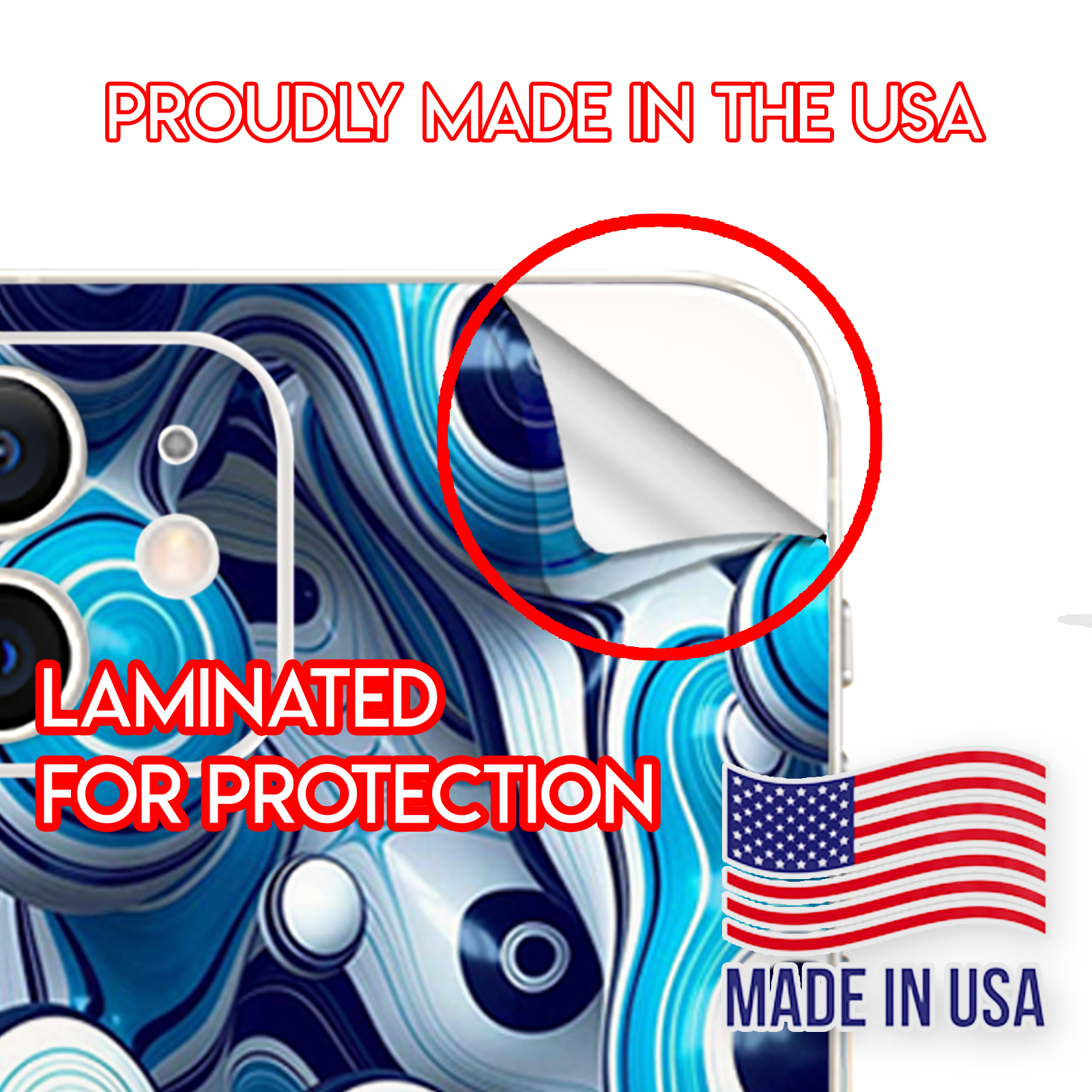 This Apple iPhone 12 Skin is Made in the USA using high quality vinyl. Super rich colors with a matte lamination provide a great look and added protection against minor scratches. Leaves no sticky residue behind.