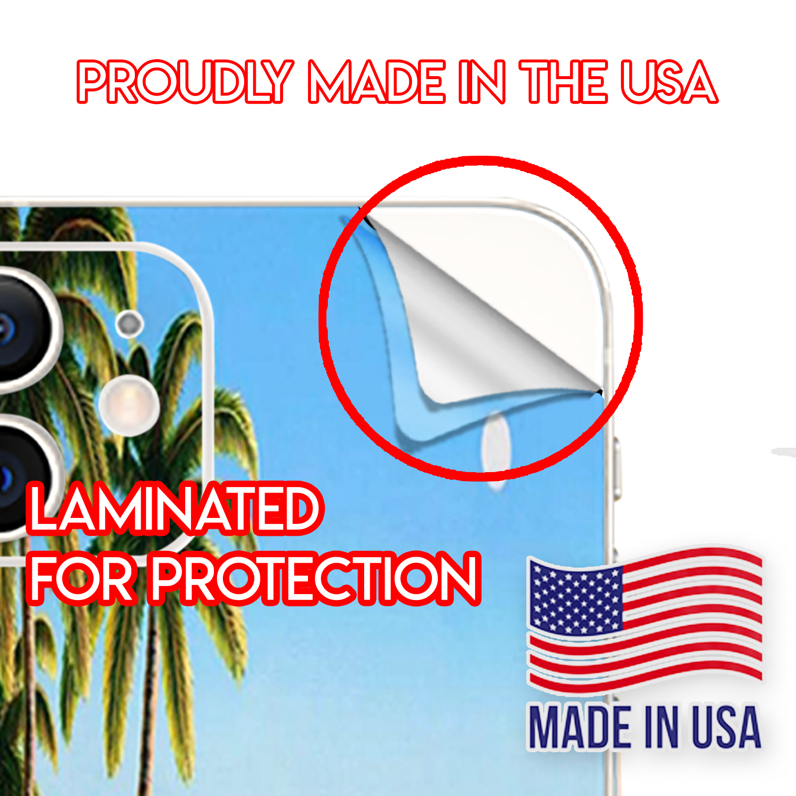 This Apple iPhone 12 Skin is Made in the USA using high quality vinyl. Super rich colors with a matte lamination provide a great look and added protection against minor scratches. Leaves no sticky residue behind.