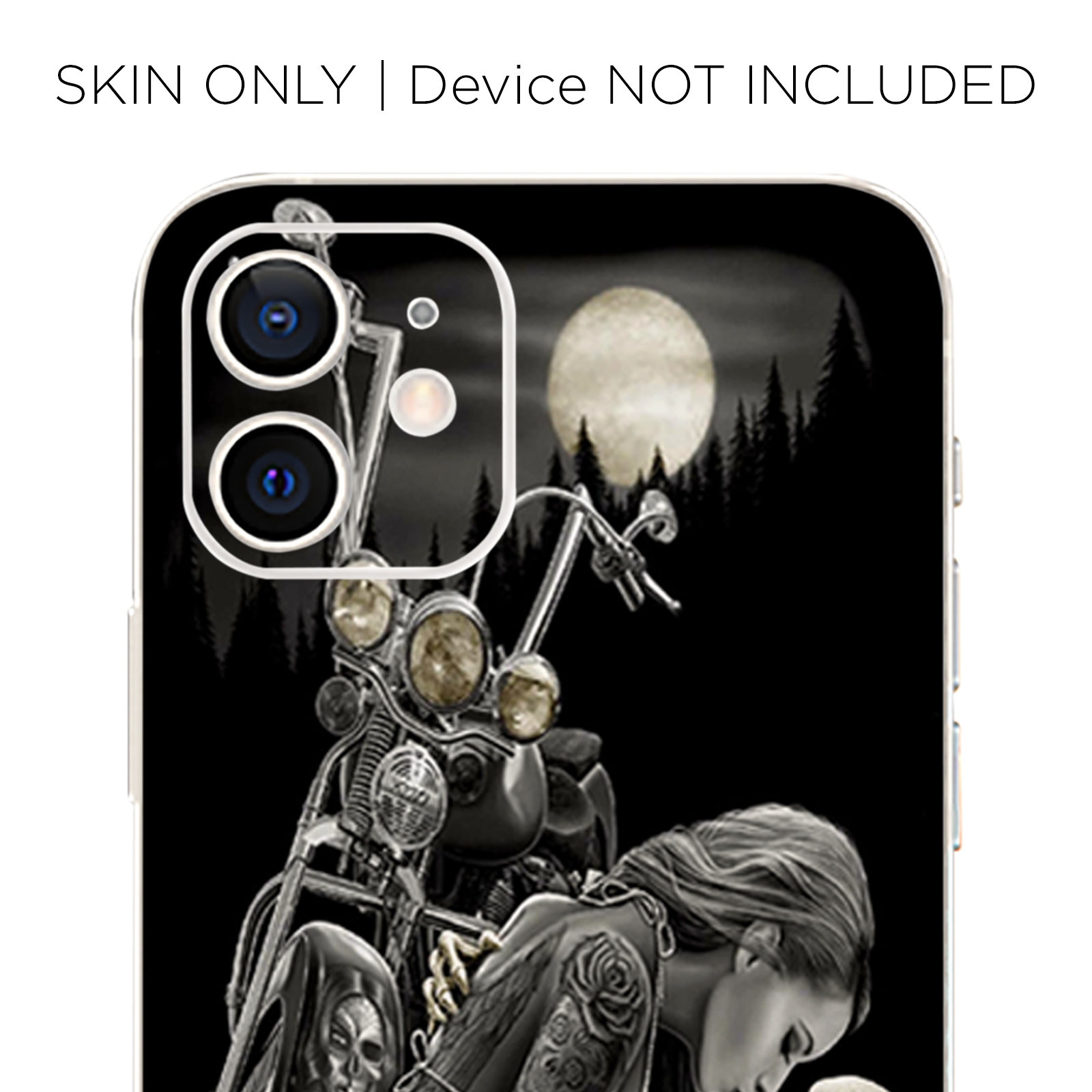 Biker Skeleton Full Moon Tattoo | Skin For Apple iPhone 12