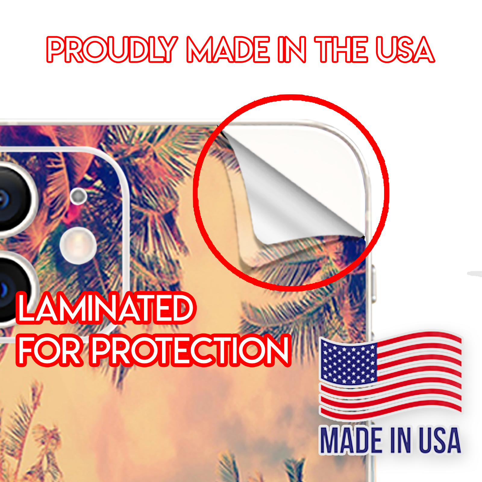 This Apple iPhone 12 Skin is Made in the USA using high quality vinyl. Super rich colors with a matte lamination provide a great look and added protection against minor scratches. Leaves no sticky residue behind.