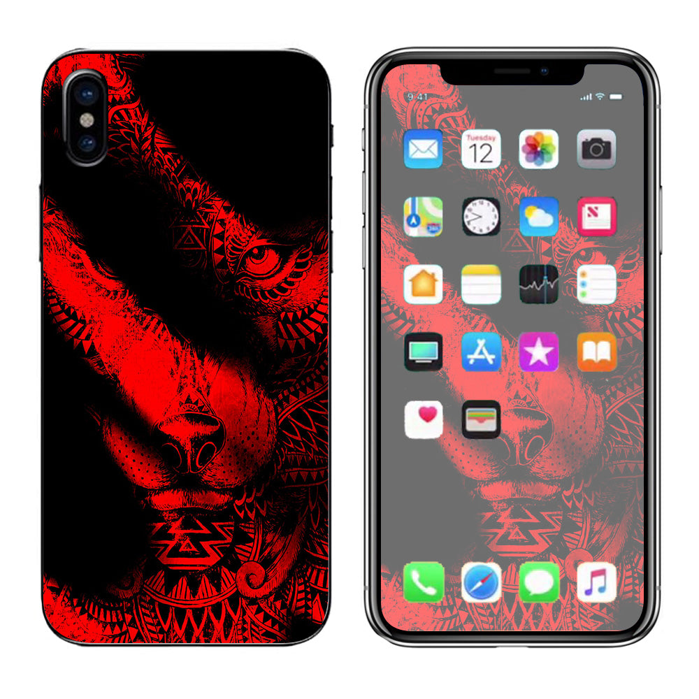 Aztec Lion Red Apple iPhone X Skin
