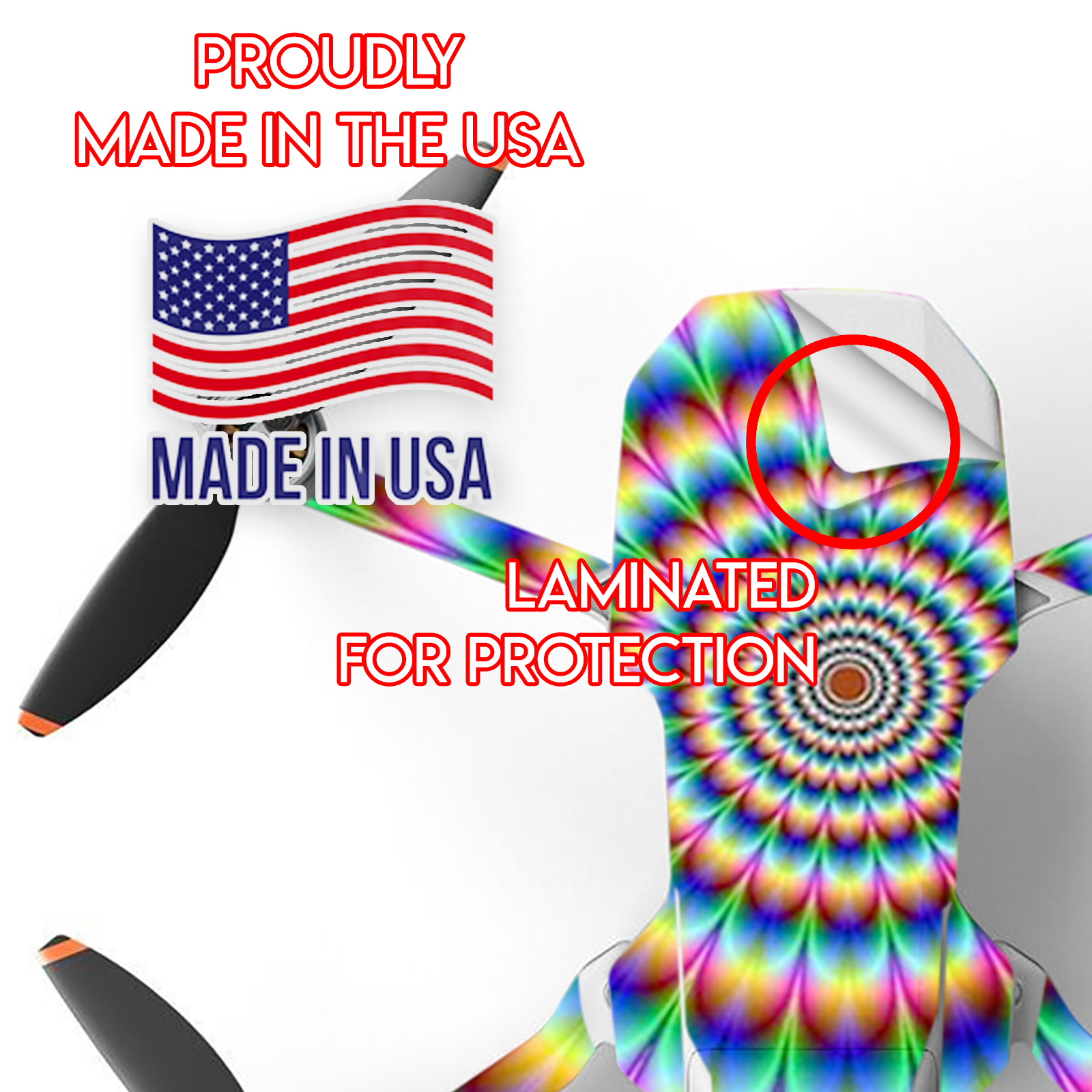This DJI Mavic Mini 2 Skin is Made in the USA using high quality vinyl. Super rich colors with a matte lamination provide a great look and added protection against minor scratches. Leaves no sticky residue behind.