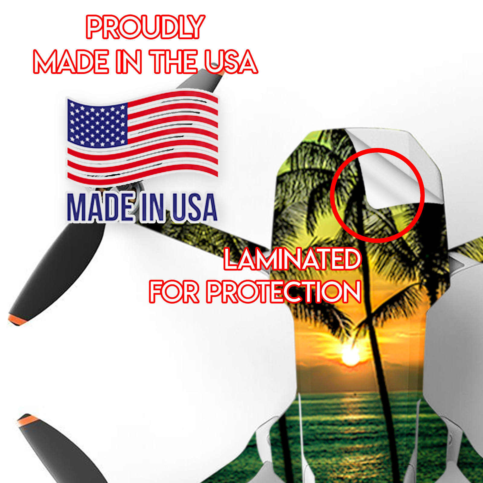 This DJI Mavic Mini 2 Skin is Made in the USA using high quality vinyl. Super rich colors with a matte lamination provide a great look and added protection against minor scratches. Leaves no sticky residue behind.