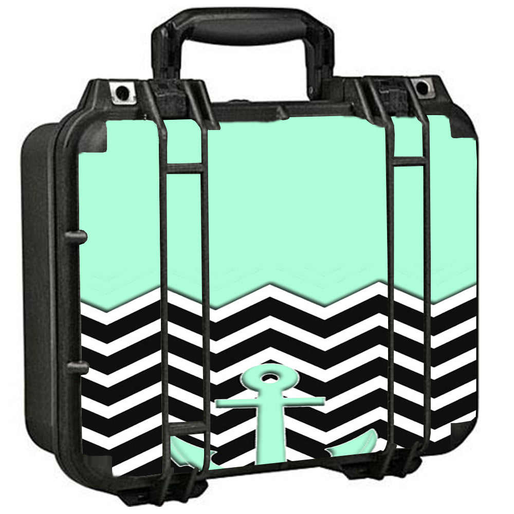 Teal Black Chevron Anchor Pelican Case 1400 Skin