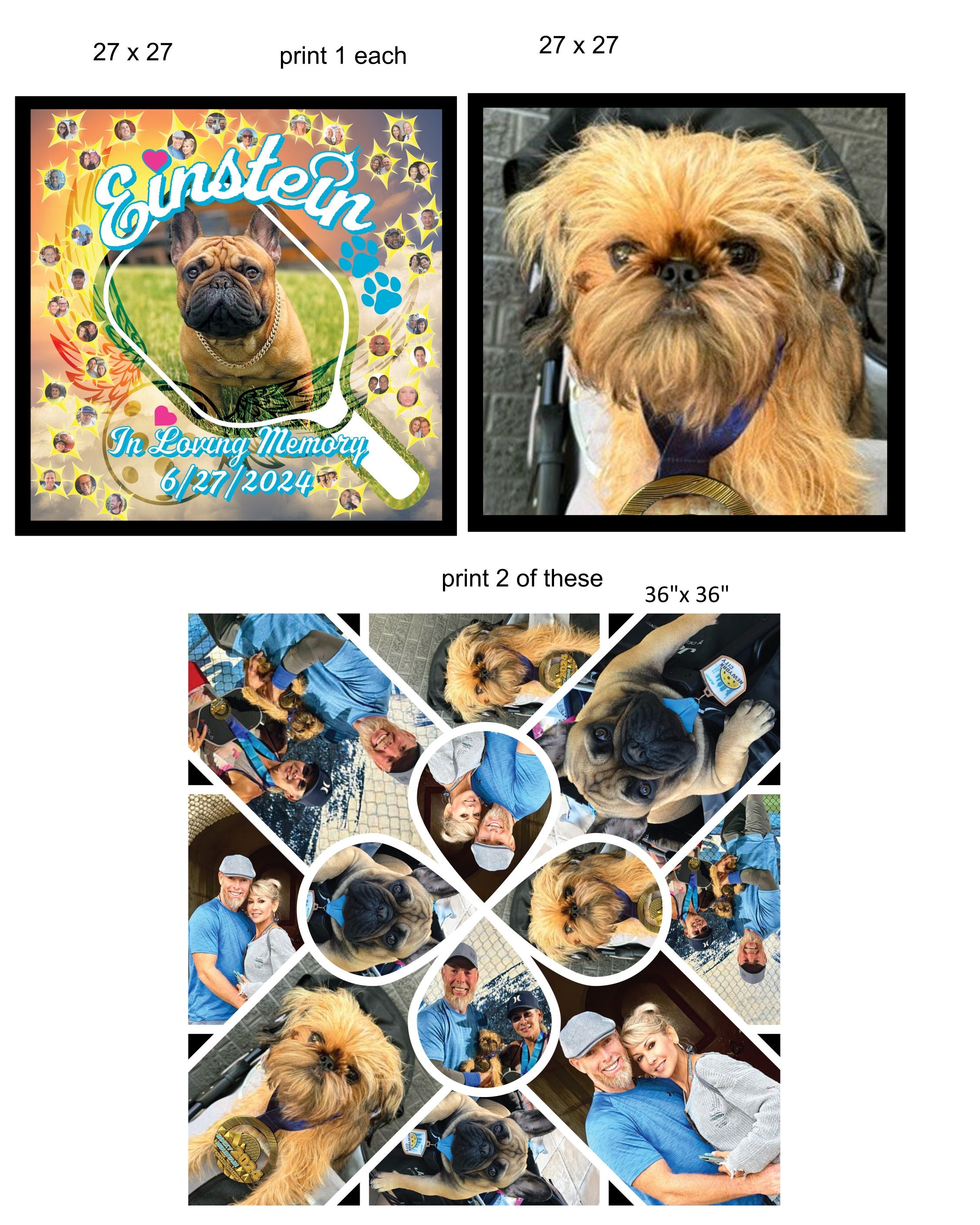 2 pcs 27x27 print 1 each- Plus 1 pcs 36x36, print 2 of those $50.00 Plus $9.00 shipping
